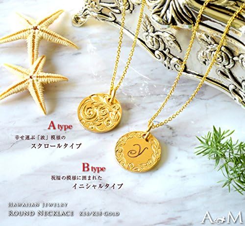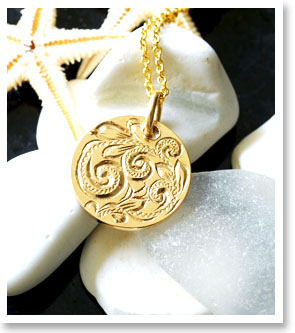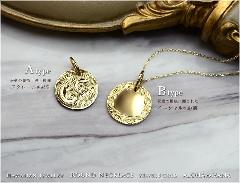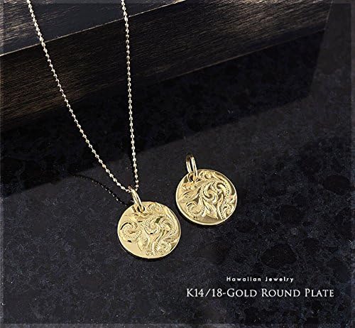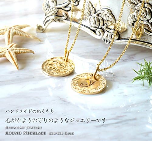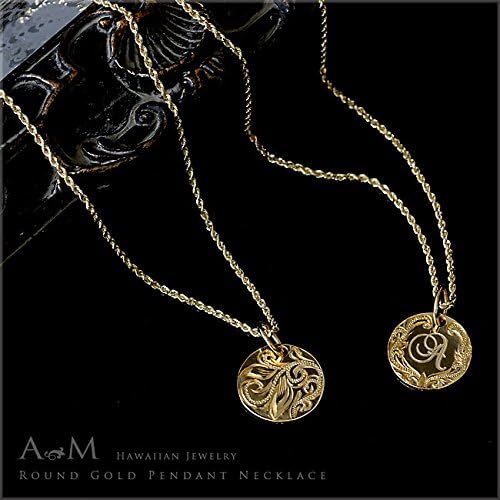 ハワイアンジュエリー レディース メンズ ネックレス スクロールまたはイニシャルが選べるK14(14金)ラウンドゴールド ペンダントトップ ペアネックレスとしても apd1039