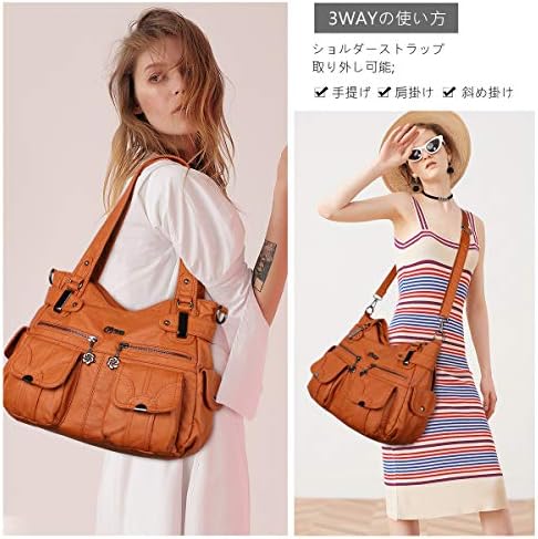 見た目以上の収納力:A4サイズの雑誌、スマホ、iPad、折り畳み傘、サングラス、化粧品、財布など、大容量のバッグで十分に入ります。二つのファスナー付きメインポケット、三つのファスナー付き小物ポケット、四つフリーポケットでショルダーバッグをスッキリと整理整頓しながら収納スペースも確保できます。