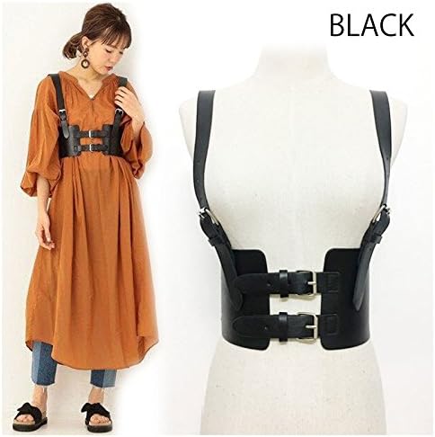 ハーネスベルト キャミ コルセット ベルト ワイドハーネスベルト フェイクレザー (ブラック) レディース 女性 服装 セクシー クール ショルダー
