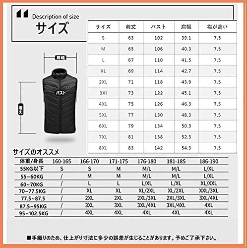 **<健康に良いベスト> 安全、知能に発熱できます。体が冷えると内臓の働きも鈍くなって代謝が落ちます、健康としては良くない話です。厚さがある裏地は通気性と保温性が強くて、快適で柔らかい、手触りがいい、着心地がいいです。