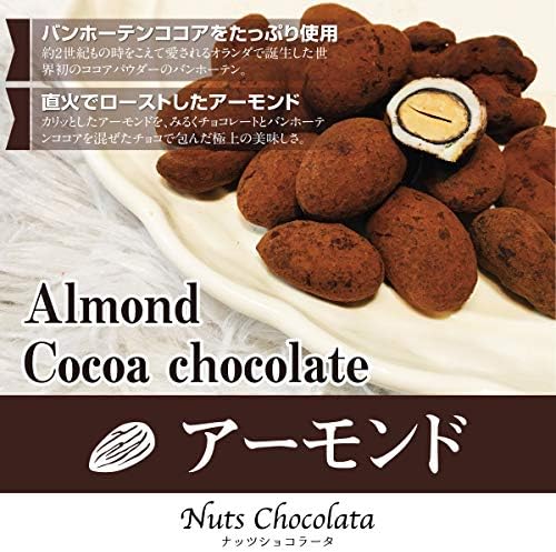 【特徴】「アーモンドココアチョコ:直火でローストしたアーモンドを、みるくチョコレートとココアを混ぜたチョコレートで包み、表面にバンホーテンココアを掛けて仕上げております」、「ピーカンナッツキャラメルチョコ:ローストしたピーカンナッツにホワイトチョコレートを掛け、表面にコクのあるキャラメルパウダーをからめて仕上げた逸品」、「ウォールナッツ(くるみ)ホワイト岩塩チョコ:キャラメリゼしたクルミにホワイトチョコレートを掛けました。 さらにフランスロレーヌ地方で摂れた粗めの岩塩をプラスした絶品ウォールナッツチョコ仕立てです」、「カシューナッツいちごチョコ:カシューナッツに小麦粉やもち米粉で生地を巻き、カリッとしたカシューナッツ生地をホワイトチョコレートパウダーで包み、あまおう苺を使用したイチゴみるくを表面に掛けた自慢の逸品」
