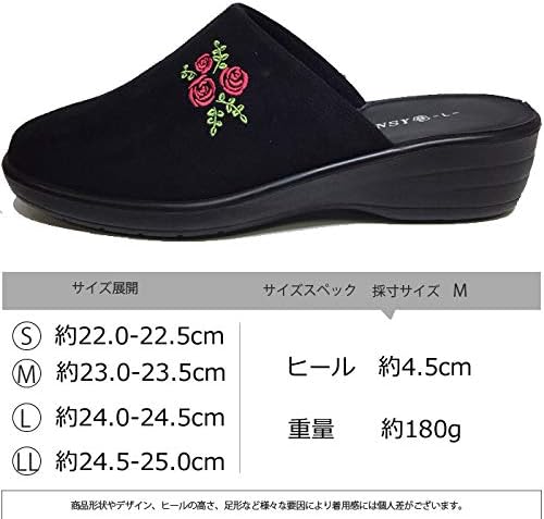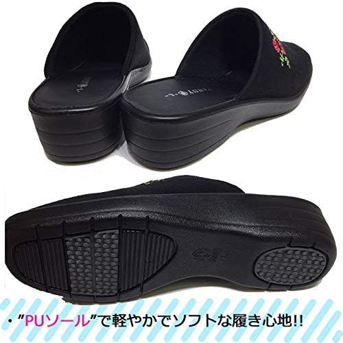 [パンジー] コンフォートサンダル レディース 防寒 刺繍 バラ 花 ヘップサンダル 軽い 靴 つっかけ オフィス履き 玄関履き オフィスサンダル 女性 婦人