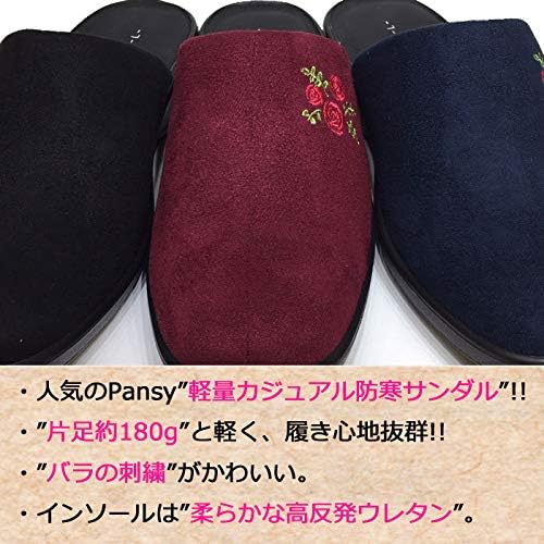 Pansy パンジー コンフォートサンダル 女性 防寒 刺繍 バラ 花 ヘップサンダル 婦人 軽量 靴 シューズ つっかけ カジュアル 軽い 婦人靴 オフィスサンダル!外履きはもちろん、オフィス・事務所履きとしても サイドにおしゃれなバラの刺繍がかわいい 内側に起毛パイル地を使用しているから足元あたたかい インソールは、柔らかな高反発ウレタン 接地面にゴム素材を施したPUソール