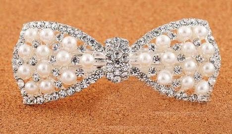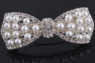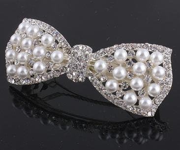 パールとキラキラダイヤのリボンのバレッタ【ヘアアクセサリー】