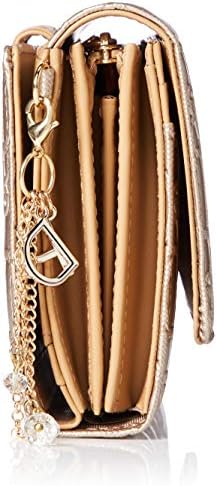 パール加工を施したサフィアーノ素材の、淡く上品な輝きに、新しいPINKYロゴの総柄エンボス模様がよく映えます。ラインストーンが入ったゴージャスなブローチ使いでクラス感を演出。きらきらっと揺れ動く、繊細でかわいいチャームのアクセサリーもこだわりのポイントです。