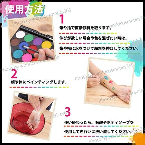 商品名:フェイスペイント 15色 専用筆 6本セット コスプレ 小道具 メイク コスメ 仮装 安全 絵具 ハロウィン Halloween クリスマス