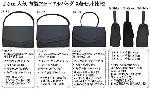スリッパや書類などちょっとしたものを入れるのに便利な手提バッグ(サイズ約28×26cm)と御祝儀・不祝儀袋を入れるのに便利な袱紗(サイズ約12×21cm)が付いた3点セットのフォーマルバッグです。