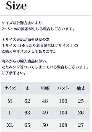 【M】丈62/肩幅48/バスト100/袖丈25 【L】丈63/肩幅49/バスト104/袖丈26 【XL】丈65/肩幅50/バスト108/袖丈27