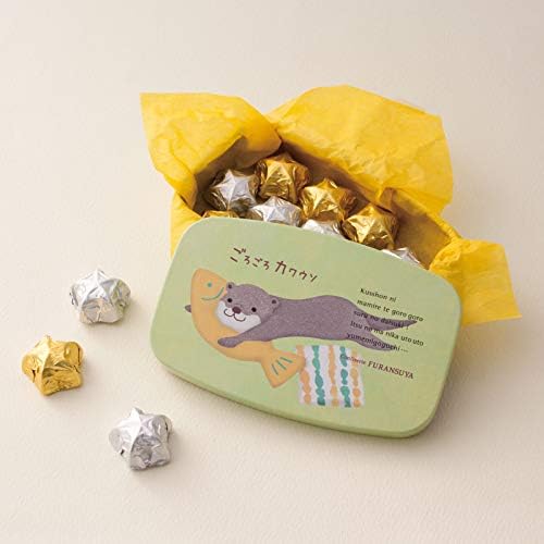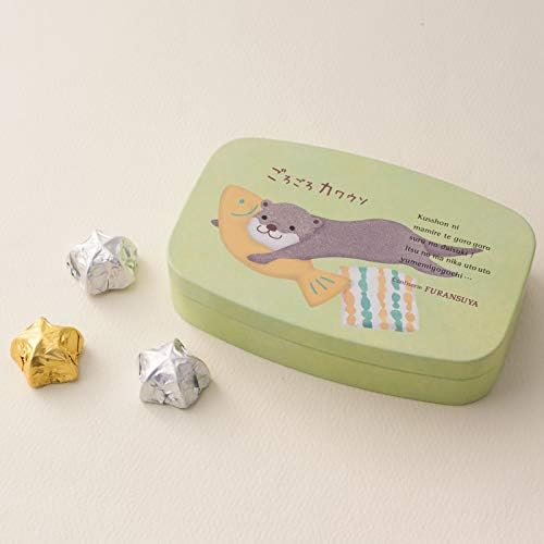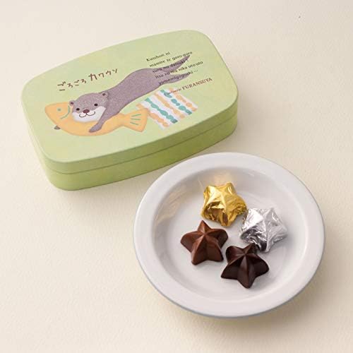 つぶらな瞳と愛くるしい仕草で見ているだけでほっこり癒されるカワウソくん。絵本を切り取ったようなほのぼのとしたシーンにショコラを添えて贈ります。 ごろごろくつろぐカワウソくんがかわいい缶になりました。中には星の形をしたミルクチョコとスイートチョコが入っています。