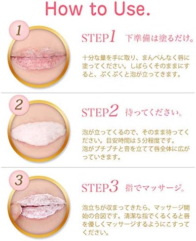 ジェル状の美容成分が自然に唇の上で泡立ちます。ウィッチヘーゼルなどの天然由来成分が吸着し、優しくマッサージするだけでポロポロと古い角質を落とし、ぷるんとしたスベスベの唇を実感できます!