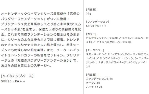 【セット内容】メイクアップベース33g / パウダリーファンデーション オーセンティックウーマン グローステージ 【メイクアップベース】SPF25・PA++ 33g 【ファンデーション】SPF35 PA+++ 【カラー】ピュアフレンチベージュ20 [チークカラー]スモーキーピンク(ピュアフレンチベージュ20にセットイン)/ サンライトベージュ(シャンパーニュベージュ40 、ナチュラルグローベージュ60にセットイン)