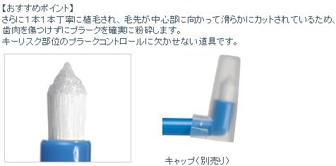 6.毛の数が、他のワンタフトブラシに比べて密に植毛されているため、粉砕されたプラークをすべて吸い上げることが可能。