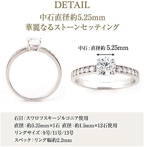 【素材・商品サイズ】ストーン:スワロフスキージルコニア 直径約5.25mm×1石/直径約1.5mm×12石使用 金性:SV925 プラチナ仕上げ(ロジウムコーティング)/ゴールド仕上げ(K18コーティング) サイズ:9号/11号/13号 リング幅:約2.2mm