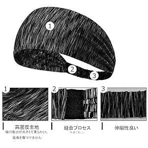 汗止め/滑り止め:よい伸縮性があり、頭にフィットし、スポーツでもしっかり髪を固定、流れる汗もしっかり受け止めます。