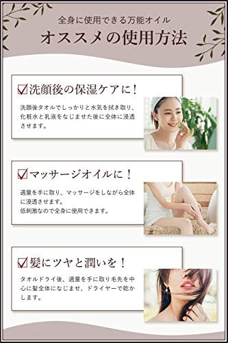 ⭐【オススメの使い方】①洗顔後の保湿ケアに。洗顔の後にしっかりと水気をふきとり、化粧水と乳液を馴染ませた後に全体に浸透させます。②マッサージオイルに。適量を手に取り、マッサージをしながら全体に浸透させます。ゆっくりと揉みほぐしてください。③髪に艶と潤いを。お風呂上がりにタオルで髪の水気を拭き取った後に、適量を取り毛先を中心に髪全体に馴染ませドライヤーをかけます。 ⭐メーカー名:武内製薬株式会社⭐MADE IN JAPAN