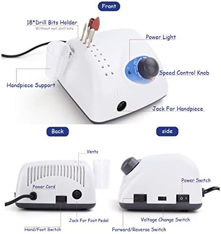 ❤SAFE DESIGN – 簡単に速度制御および変更ビットをダイヤル使用します。このネイルドリルが過熱から自身を守るために自動過負荷保護で設計されています。過熱した場合、自動過負荷保護が有効になります。..
