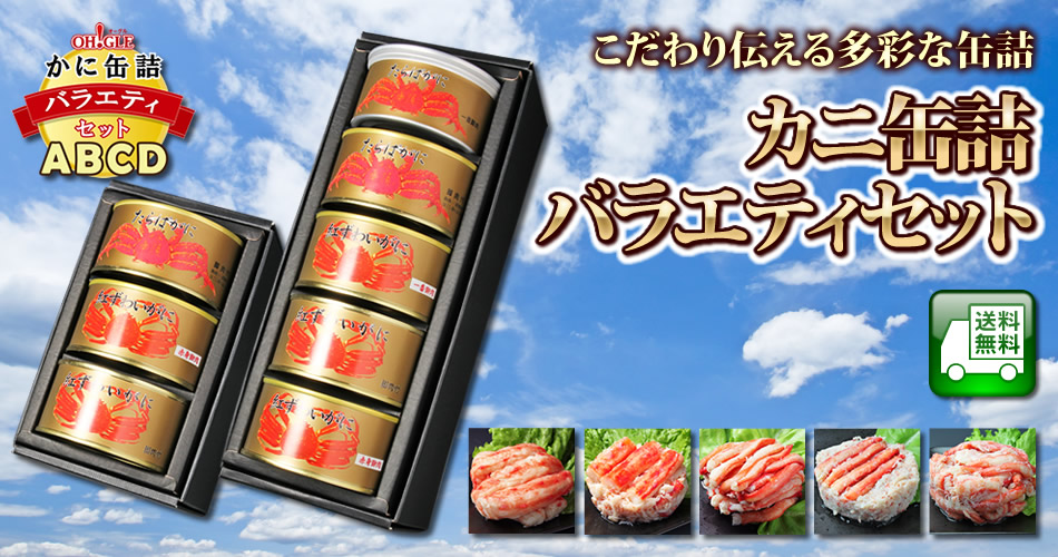 OH!GLEがいまお客様にお届けしたいカニ缶詰の中から、ギフト向けに人気が高く、食べ比べが楽しい缶詰をセレクトした珠玉のセットです。