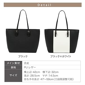 サイズ:高さ28.5cm 横上辺42cm 横下辺32cm マチ14.5cm 持ち手長さ47~59cm(3段階に調整可能)
