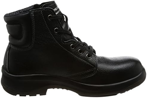 ●2017年度グッドデザイン賞を受賞しました。 [規格] JIS T8101 革製 S種(普通作業用) E(かかと部の衝撃エネルギー吸収性)・F(耐滑性)合格 [製法] I式 [材質] 先芯:新ワイド樹脂、甲被:牛クロム革(ソフト型押)、中敷:プレミアムインソール(抗菌・防臭)、靴底:発泡ポリウレタン2層底 [標準重量] 840g/足(基準23.5cm) ※両足での重さです。 [色] ブラック [商品説明] ●ワイド樹脂先芯:幅広で履きやすい樹脂先芯を採用。 ●発泡ポリウレタン2層底:耐滑性、耐摩耗性、クッション性に優れたソールです。 ●耐滑底(最高レベル):最高レベルの耐滑性。油や水などで特に滑りやすい床面での作業に適した滑りにくい靴です。 ●スリップサイン:靴底に滑りの原因、底減りが目視でわかる3ヵ所のサイン付き。交換時期の目安です。 ●かかと衝撃吸収:クッション性に優れた素材を使用し、足にかかる衝撃を軽減します。 ●リフレクター:夜間での作業でも光を反射させ自分の位置を知らせる事が可能 ※商品のデザイン、仕様、価格等は予告なく変更となる場合がございます。