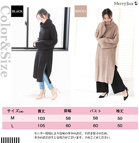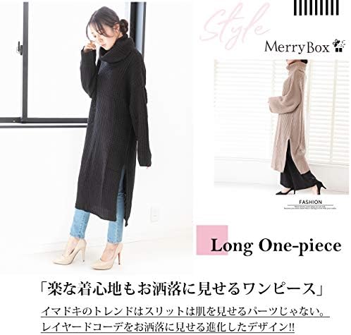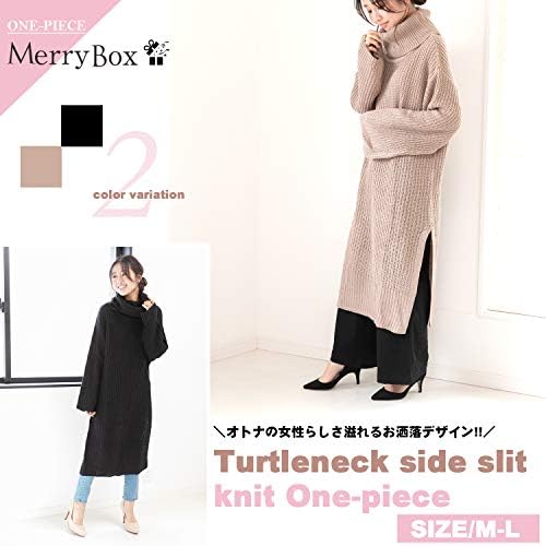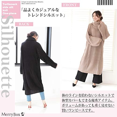 [メリーボックス] ニットワンピース ボリューム タートルネック スリット オーバーサイズ ざっくり ニット レディース
