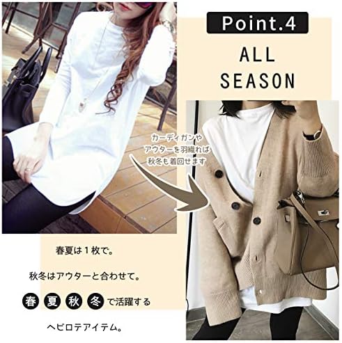春 秋 は1枚で、もしくはカーディガン、ジャケット、トレンチコート、テロンチ、パーカー、と合わせて、冬はアウターも合わせて、ロングシーズン活躍します。ボトムスはデニムやスキニー、ショートパンツなどと合わせてもいいですし、アクセサリーも合わせることでよりきれいめコーデが楽しめます。