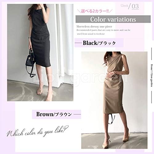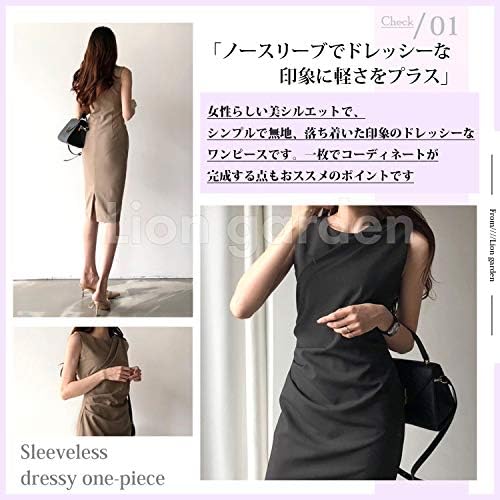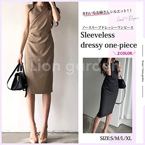 [ライオンガーデン] ノースリーブ シンプル ドレス 上品 ワンピース パーティ 発表会 無地 S ~ XL レディース