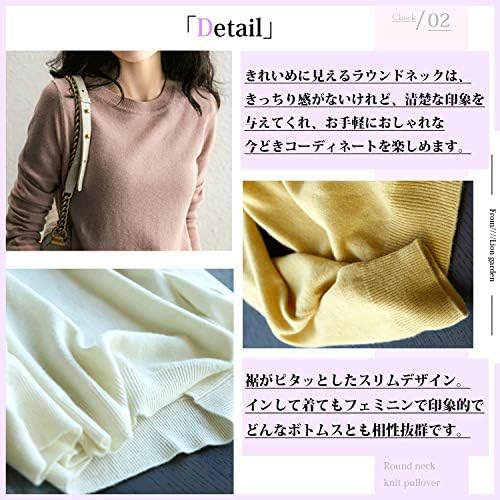 きれいめなニットでゆったりとリラックスした印象を与えてくれます。 きれいめに見えるラウンドネックは、きっちり感がないけれど、清楚な印象を与えてくれるかも。