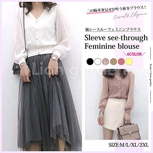 [ライオンガーデン] 6色展開 透け感 袖 ブラウス 長袖 シースルー 秋 トップス カットソー M ~ 2XL レディース