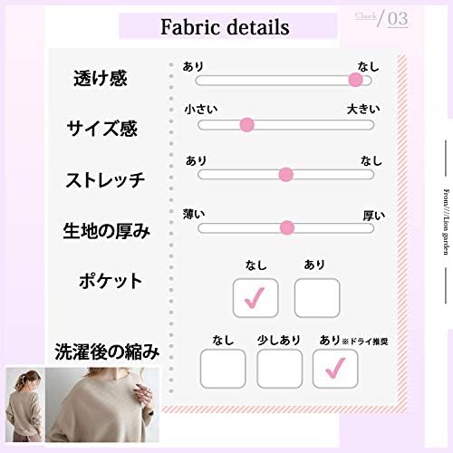 どんな体型にも合わせて着ることができるので実用性もちゃんとあります◎ ふんわり厚手素材を採用しているのであったかな着心地で長時間の着用でもストレスフリーです。 トップス部分はきれいめに見えるかたちですので、ネックレスやブレスレットが映えるデザインになっています。 可愛さと大人っぽさ、オシャレ感も兼ね備えたトップスはおうち時間に着てもよし、ちょっとした近所へのお買い物にも、もちろんお出かけシーンのコーディネートに使えます。