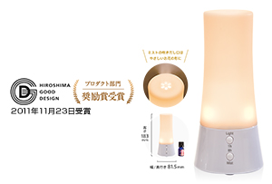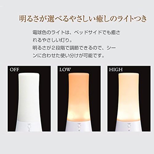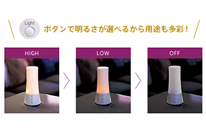 ラサーナ アロマディフューザーのライトは寝室にもよく合う癒しの電球色。2段階の明るさ調整機能付きです。