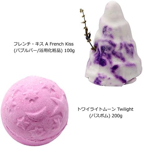 内容:トワイライトムーン Twilight (バスボム) 200g、トワイライトムーン ボディローション Sleepy (ボディローション) 50g、フレンチ・キス A French Kiss (バブルバー/浴用化粧品) 100g
