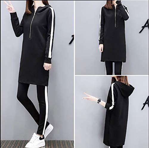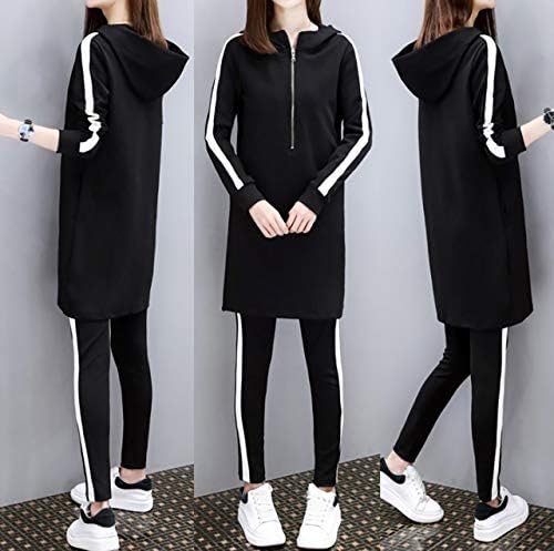 上下がセットになっているジャージ風ルームウェアです。長袖のフード付トップスとロングパンツの組み合わせで、白のラインがほどよいアクセントに。