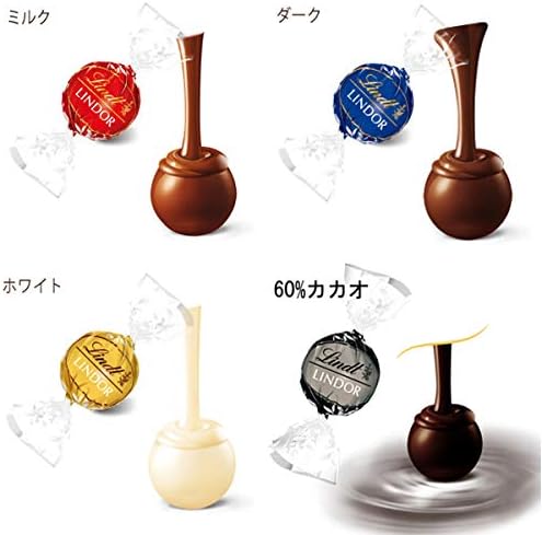 22種類(リンドールミルク、ダーク、ホワイト、60%カカオ、70%カカオ、ヘーゼルナッツ、キャラメル、ストロベリー&クリーム、マンゴー&クリーム 、ココナッツ、シトラス、ミルクオレンジ、カプチーノ、ストラッチアテラ、シーソルト、ミルク&ホワイト、ファッジスワール、キャラメルシーソルト、アーモンド、ミルクミント、抹茶、ピスタチオ)