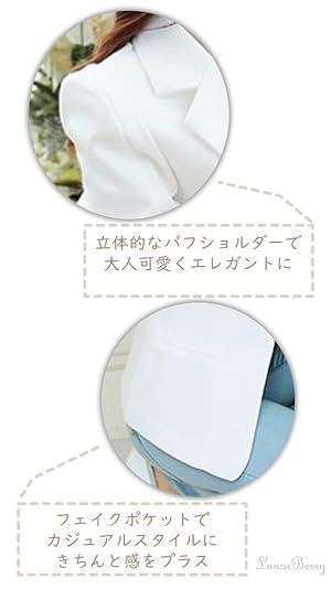 肩パット入りのパフショルダー(ビルドアップショルダー)で、羽織るだけでスタイル良く見え、二の腕を華奢見せしてくれてます。共布ボタンで仕上げたシンプルな定番デザインなので、シーズンやシーン、テイストを問わない着回し力抜群のファッション・アイテム♪フォーマルや様々なオケージョン、オフィスやビジネスシーン、ちょっとしたお呼ばれやママ会などのコーデにもオススメです。