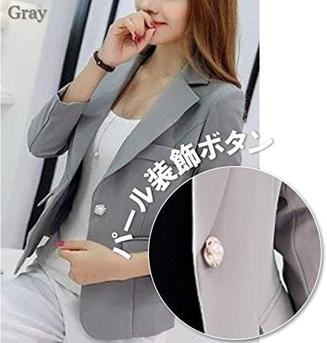女性らしいエレガントな雰囲気のテーラードジャケット、フロントボタンのタイプはパール装飾ボタン、シンプル黒ボタンの2種類ご用意しました。