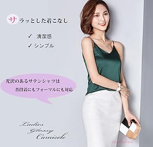 サラッとした着こなしで、清潔感とゴージャスなイメージを演出できるシルク風サテンキャミソールです。