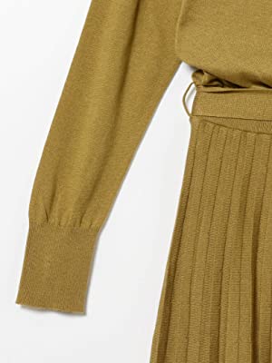 プリーツスカートのニットワンピースは、一見セットアップのようにも見えるデザイン。ウエストにある同素材のベルトが全体を引き締めスタイルアップも狙えます。