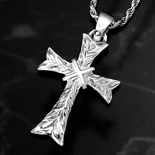 レイラニ ハワイアンジュエリー クロス マイレリーフ ペンダント ネックレス メンズ シルバー 925 (ロープチェーン60cm付)