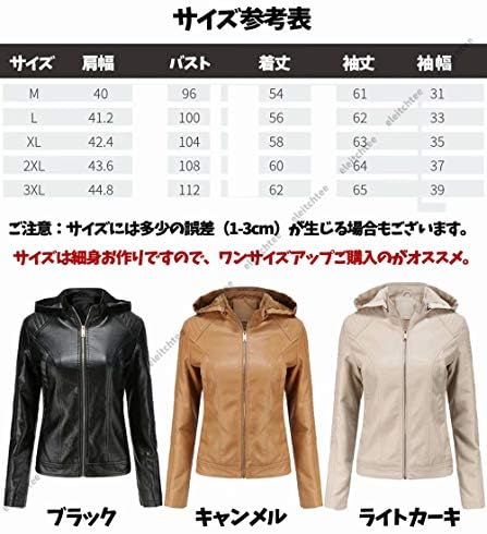 [カラー] ブラック(裏起毛)、キャンメル(裏起毛)、ライトカーキ(裏起毛)、ブラック(裏起毛なし) [素材]高品質なPUレザー 裏起毛タイプ帽子:取り外し可能 [サイズ] M/L/XL/2XL/3XL/4XL(ぜひサイズ参考表をご参考してお選びくださいませ) サイズは細身デザインですので、ワンサイズアップご購入のがオススメ。