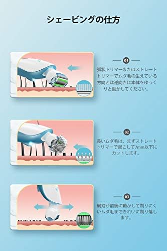 アロエ潤滑ストリップは傷とアレルギーを防ぎます。または、内蔵のLEDライトは産毛も明らかにして、徹底的な脱毛を確実にします。