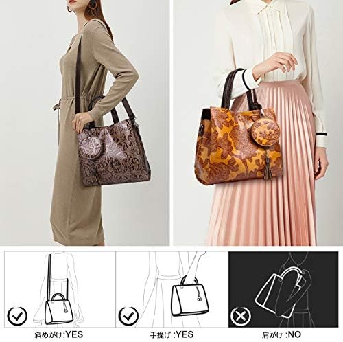 柔らかい質感のあるレザーに花柄模様を型押し、さらにハンドペイントで丁寧に染料を塗り重ねることで、表面の凸凹部分に濃淡のコントラストによる立体感を表現し、レトロで上品なデザインに仕上げています。トレンドに左右されなく季節問わずご利用いただけます。