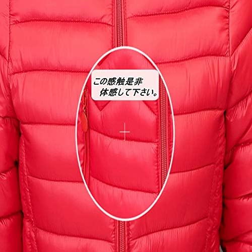 (暖かさ) 防風、防寒、簡易的な防水にも対応でき冬のどの場面にも対応できる出れでも一枚は持っておきたい一品になります。 (軽量) 暖かさと軽量を両立させるため、素材にこだわり抜いて超軽量を実現させました。綿の一本一本まで軽量化を追求し、ふんわりとした軽い着心地で快適な着心地です。 (スリム) 薄いのにしっかりと暖かく、包み込むような柔らかな着心地をお楽しみください。ボディーラインを美しく見せる立体設計で美シルエットを実現しました。 (便利) 両サイドポケットのチャックも付け、スマホや小銭入れても落とさないので便利さの面から見ても重宝します。