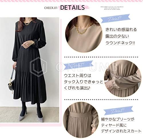 体のラインを拾いにくく、綺麗なシルエットを保ちます。 高め位置でウエストを切り替え優美なシルエットに。 さらにフレアスカートが気になる太ももまでのラインをしっかりカバーします。 ロング丈なので、足首を華奢見せしてくれのも嬉しいポイント♪ 気になる二の腕をカバーしてくれる袖丈デザインです。