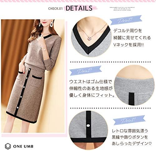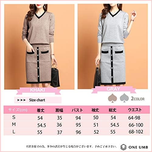 [ワン アンブ] Vネック ニット セットアップ 膝丈 2点セット セーター スカート 長袖 お呼ばれ きれいめ 着痩せ 秋 冬 S ~ L レディース