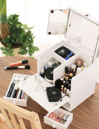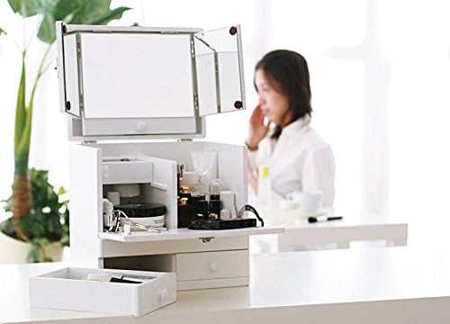 上部のトレーはスライド式!良く使う小物を入れるのにピッタリ♪5段階まで調節できる大型三面鏡。