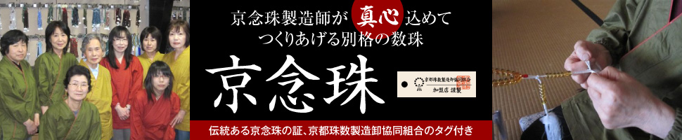 滝田商店ブランド品質の証である滝田商店発行「京念珠製造師製作証明書」付き。伝統ある「京念珠」だけが付けることを許される京都珠数製造卸協同組合のタグ付き。京念珠製造師が匠の技で仕立てた逸品でございます。