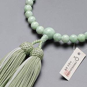 ビルマ翡翠を使用したすべての宗派で使える女性用の数珠です。