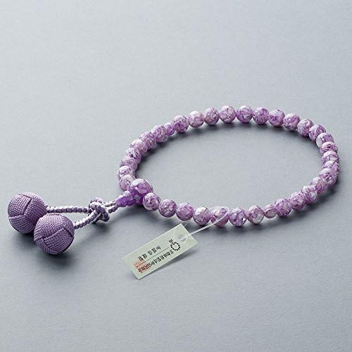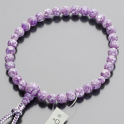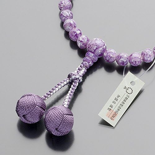 マーブル模様が美しいラベンダーシェルを使用した女性用の念珠です。ラベンダーシェルは「紫貝(むらさきがい)」という貝を特殊な加工で仕上げた玉で、他の数珠とは一味違う、かわいらしくオシャレな雰囲気があります。表情豊かな美しい艶めきで、上品な印象を演出してくれます。