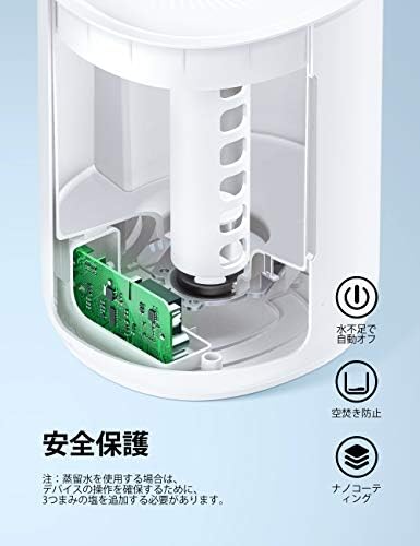 【安全で使いやすい】:この加湿器は空焚き防止のために、低い水位で自動的に停止します。内部構造のナノコーティングにより、ほこりや錆から保護されます。