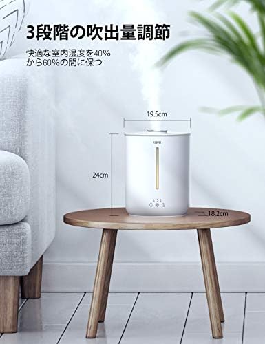 【3段階ミスト量調整】:3つのミストレベルと360°のミストノズルはご部屋に理想的な湿度を効率的に提供します。40%から60%にかけて理想的な湿度は寝室、リビングルーム、書斎、オフィスなど様々な場所でも対応できます。